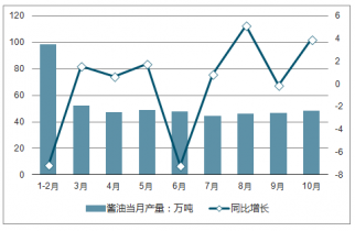 2018年1-10月全國醬油當月累計產量及增長走勢