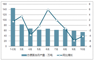 2018年1-10月全國方便面當(dāng)月產(chǎn)量及增長走勢