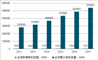全球風(fēng)電市場裝機(jī)容量(MW)