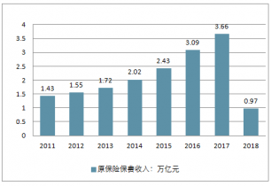 圖表82011-2018年中國(guó)保險(xiǎn)業(yè)保費(fèi)收入統(tǒng)計(jì)