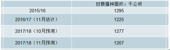中國甘蔗播種面積走勢