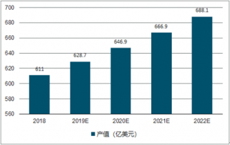 2018-2022年全球PCB電路板行業(yè)產(chǎn)值預(yù)測(cè)(億美元)