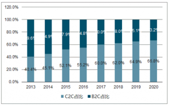 2019年中國網絡購物市場中B2C市場交易規(guī)模為3.6萬億元,在中國整體網絡購物市場交易規(guī)模中的占比達到60.0%,較2019年提高4.8個百分點;從增速來看,2019年B2C網絡購物市場增長40.9%,遠超C2C市場15.7%的增速。本年度過后,B2C市場占比仍將持續(xù)增加。隨著網購市場的成熟,產品品質及服務水平逐漸成為影響用戶網購決策的重要原因,未來這一訴求將推動B2C市場繼續(xù)高速發(fā)展,成為網購行業(yè)的主要推動力。而C2C市場具有體量大、品類齊全的特征,滿足長尾市場的需求,未來規(guī)模也會持續(xù)增長。