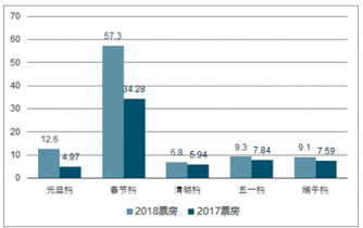 2018與2017上半年各檔期票房對比(億元)