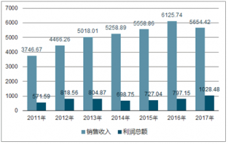 2011-2017年全國(guó)白酒行業(yè)銷售收入和利潤(rùn)總額分析