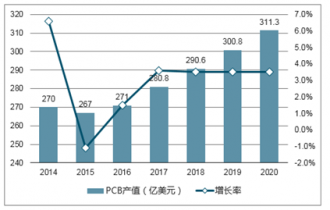 2019年全球PCB市場產值達到553.5億美元,未來在全球電子信息產業持續發展的帶動下,預計2019年全球PCB市場的產值將達566.8億美元,將由2019年的553.5億美元增長到2021年的594.3億美元,年復合增長率約為2.4%。