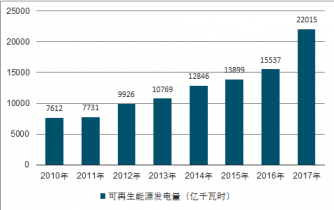 2010-2017年中國(guó)可再生能源發(fā)電量情況