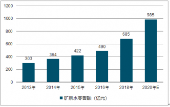 未來幾年隨著國民對(duì)飲水健康關(guān)注度的提升,國內(nèi)市場礦泉水的需求量將保持穩(wěn)步上升趨勢,預(yù)計(jì)到2020年中國礦泉水零售額將接近1000億元。