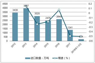 2012-2018年中國無煙煤進口數(shù)量統(tǒng)計圖