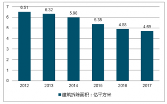 2012-2017年我國建筑拆除面積走勢圖