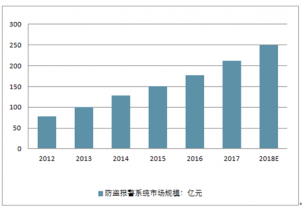 2016年我國防盜報警行業市場規模為180億元左右,2018年突破200億元。2018年我國防盜報警行業市場規模將突破250億元。