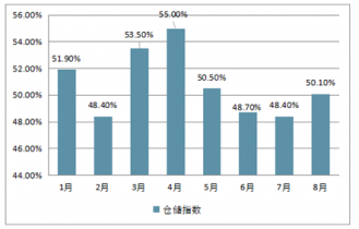 日前中國物流與采購聯(lián)合會與中儲發(fā)展股份有限公司聯(lián)合調(diào)查的2018年8月中國倉儲指數(shù)為50.1%,較上月回升1.7個百分點。各分項指數(shù)中,除延伸業(yè)務(wù)量指數(shù)、期末庫存指數(shù)較上月有所回落外,其余指數(shù)均有不同程度的回升。