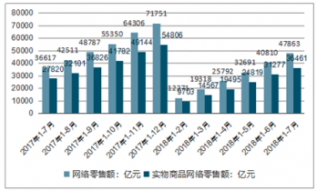 2017-2018年各月份中國嬰兒推車網絡零售額增長速度、實物商品網絡零售額對比