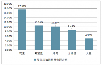 2018年7月嬰兒尿褲網(wǎng)絡(luò)零售前五品牌分別是:花王、幫寶適、好奇、尤妮佳、大王。其中,花王品牌嬰兒尿褲網(wǎng)絡(luò)零售額占比為17.58%,位列第.一;其次,幫寶適占10.58%,排名第二;好奇位列第三,占10.1%。值得提出的是:位列排行榜前三品牌占比38.26%,近嬰兒尿褲網(wǎng)絡(luò)零售額四成。
