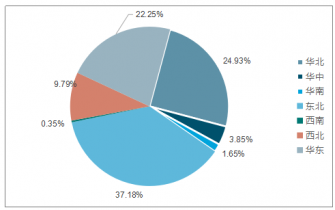 從區域分布來看,東北地區占比最大份額,達到37.18%;其次是華北地區,占比為24.93%;隨后是華東地區,占比達到22.25%。