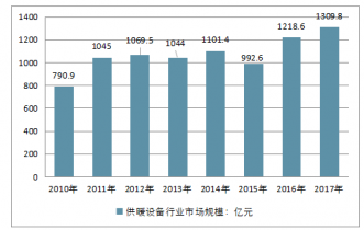 2010-2017年中國供暖設備行業市場規模(單位:億元)