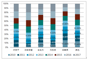 2010-2017年我國兒童保健品市場品牌份額(單位:%)