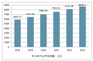 2018-2023年中國水務(wù)行業(yè)市場規(guī)模測算(單位:億元)
