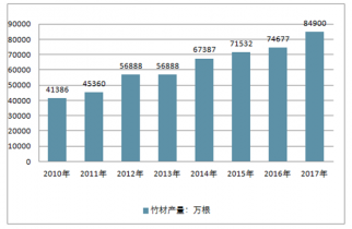 2010-2017年中國(guó)竹材產(chǎn)量走勢(shì)