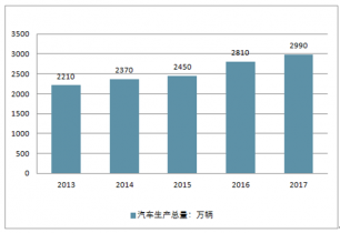 2013-2017年中國(guó)汽車行業(yè)生產(chǎn)總量走勢(shì)