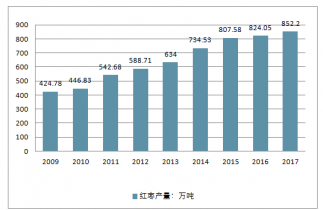 2009-2017年我國(guó)紅棗產(chǎn)業(yè)規(guī)模及增長(zhǎng)情況