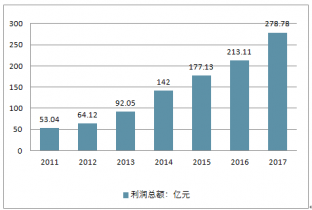 2011-2017年中國化妝品利潤總額走勢