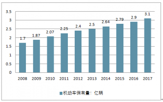 2008-2017年中國(guó)機(jī)動(dòng)車保有量變化(單位:億輛,%)