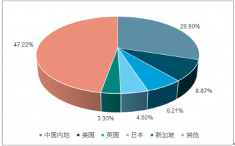 圖表6:2016-2019年中國服務業市場占全球份額比較
