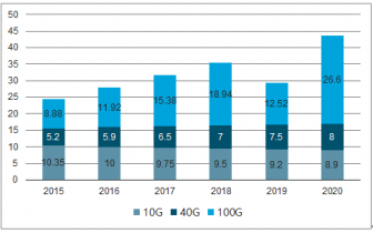 10G/40G/100G光模塊細分銷售收入預測