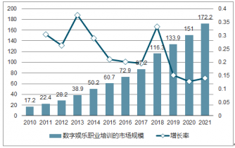 2010-2021年中國數(shù)字娛樂職業(yè)培訓的市場規(guī)模
