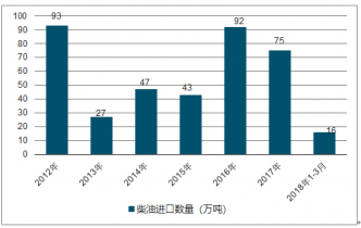 2012-2018年中國(guó)柴油進(jìn)口數(shù)量分析