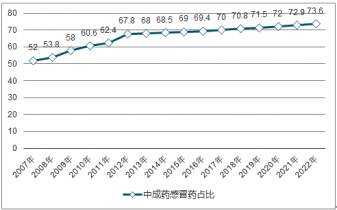 2007-2022年中國中成藥感冒藥銷售市場占比走勢