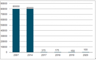 圖表8:2016-2019年中國地理信息技術(shù)專利申請量走勢圖(單位:件)