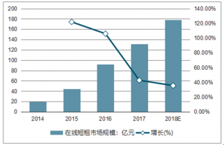 2014-2018年在線短租市場(chǎng)規(guī)模及增長(zhǎng)率情況