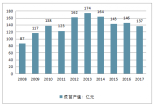 2008-2017年中國疫苗產值情況(按批發口徑測算)