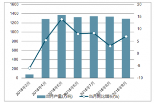 2018年2-9月中國中厚寬鋼帶各月當月產量及同比增長走勢