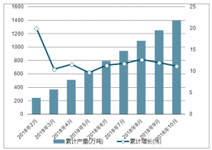 2018年2-10月中國銅材各月累計產(chǎn)量及同比增長走勢