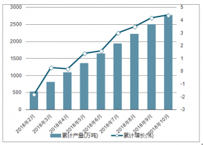 2018年2-10月中國原鋁(電解鋁)各月累計產(chǎn)量及同比增長走勢