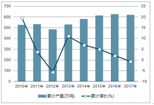2010-2017年中國鋅產(chǎn)量及同比增長走勢