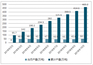 2018年2-10月中國鋅各月當(dāng)月產(chǎn)量及累計(jì)產(chǎn)量走勢