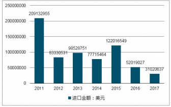 2011-2017年我國鐵道及電車維修或服務車進口金額分析