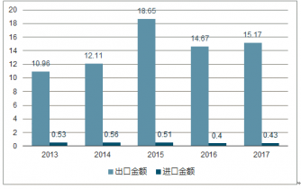 我國玻璃包裝容器進出口統(tǒng)計(億美元)