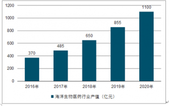 2016-2020年中國海洋生物醫(yī)藥行業(yè)產(chǎn)值(億元)