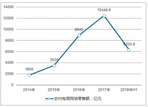 2017年農(nóng)村網(wǎng)絡(luò)零售額達(dá)到12448.8億元,同比增長39.1%。據(jù)最新數(shù)據(jù)顯示,2018上半年農(nóng)村網(wǎng)絡(luò)零售額達(dá)到6322.8億元。