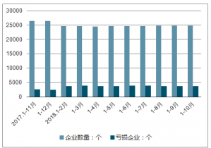 2018年1-10月我國(guó)農(nóng)產(chǎn)品行業(yè)規(guī)模以上企業(yè)數(shù)量達(dá)到24906家,其中虧損企業(yè)數(shù)量3705家,虧損面14.87%,2018年1-10月農(nóng)產(chǎn)品行業(yè)虧損總額201.4億元,同比增加18.3%。