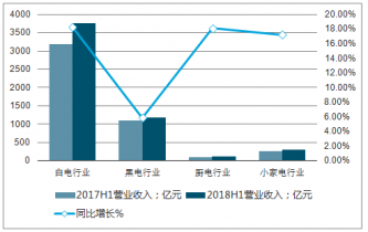2017-2018年H1中國(guó)家電行業(yè)分細(xì)分行業(yè)營(yíng)業(yè)收入情況