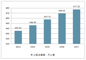 2013-2017年全國公路總里程情況