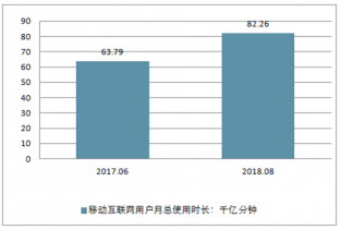 中國(guó)移動(dòng)互聯(lián)網(wǎng)用戶月總使用時(shí)長(zhǎng)情況