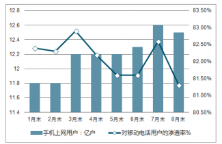 2018年1-8月末手機(jī)上網(wǎng)用戶情況