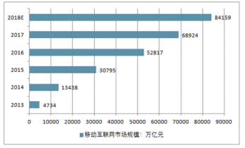 2013-2018年中國移動互聯網市場規模走勢